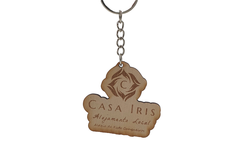 Este porta-chaves em madeira destaca-se pelo seu design sofisticado e pela gravação a laser de alta precisão com o nome “Casa Iris – Alojamento Local”. Com um acabamento natural e resistente, é a lembrança perfeita para quem quer conservar a memória de uma estadia inesquecível. Funcional e elegante, este porta-chaves é uma peça exclusiva que alia qualidade e charme, ideal para quem procura um souvenir autêntico e duradouro da Casa Iris.